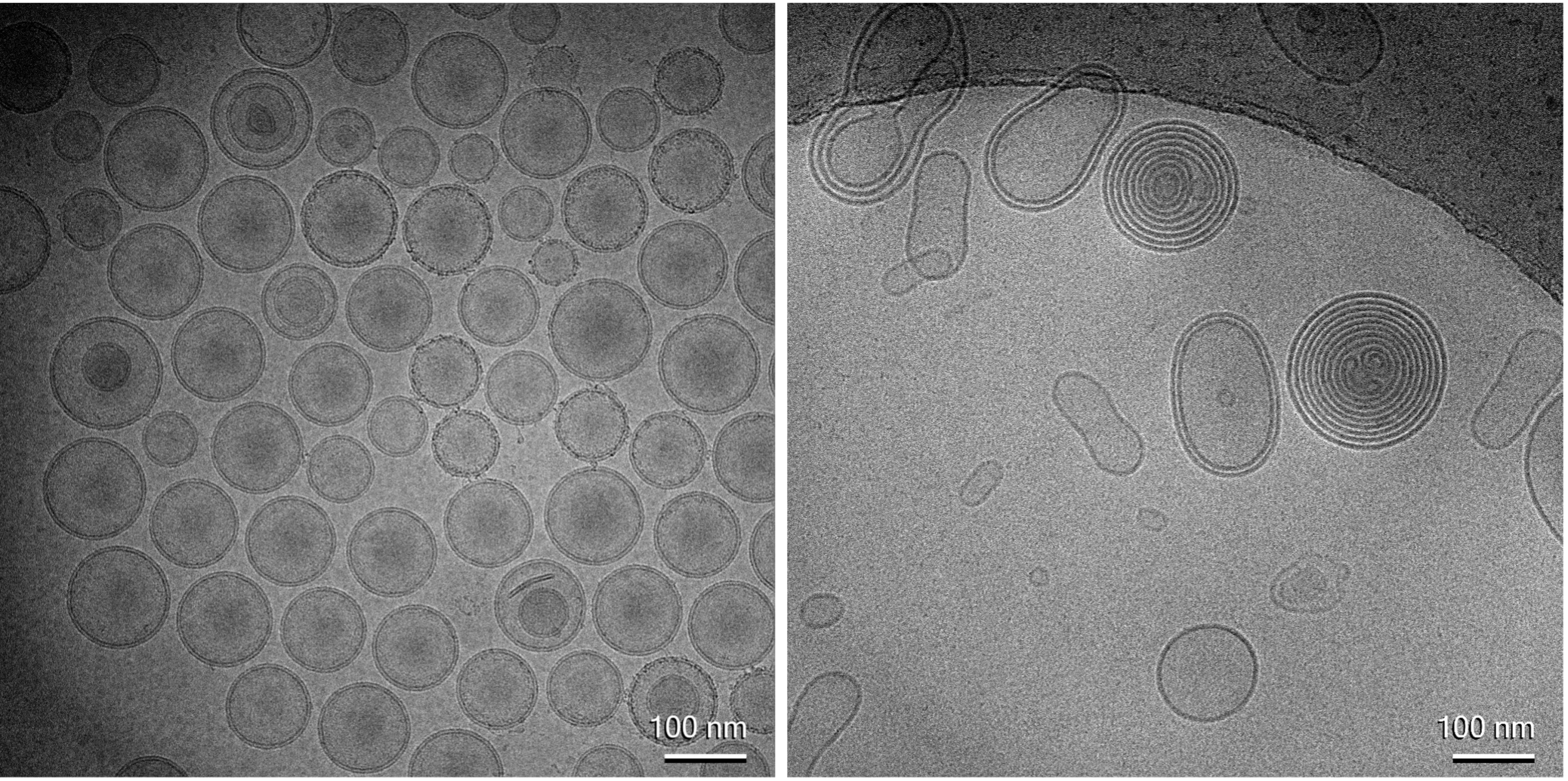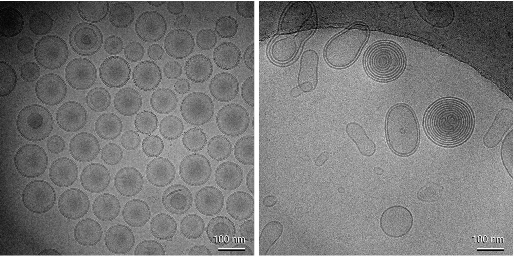 This approach is already successful in transmission electron microscopy (TEM) for these materials. Within the METRINO project, we use cryogenic TEM to visualize the materials and demonstrate that the cryogenic preparation process effectively preserves their structure. Cryogenic TEM imaging, as shown in Figure 1, provides detailed structural and dimensional information, enabling evaluation of the product’s homogeneity and structural integrity and purity.