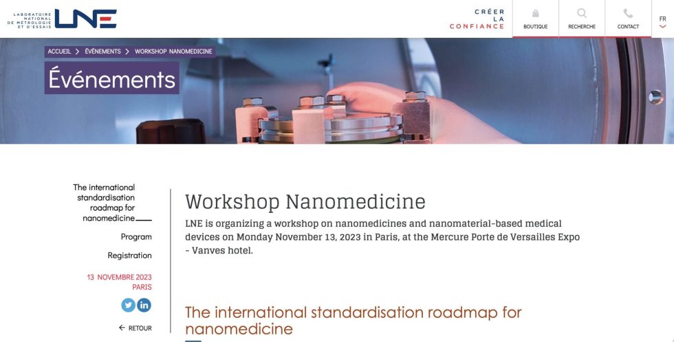 LNE is organizing a workshop on Monday November 13, 2023 in Paris, focused on nanomedicines and nanomaterial-based medical devices.